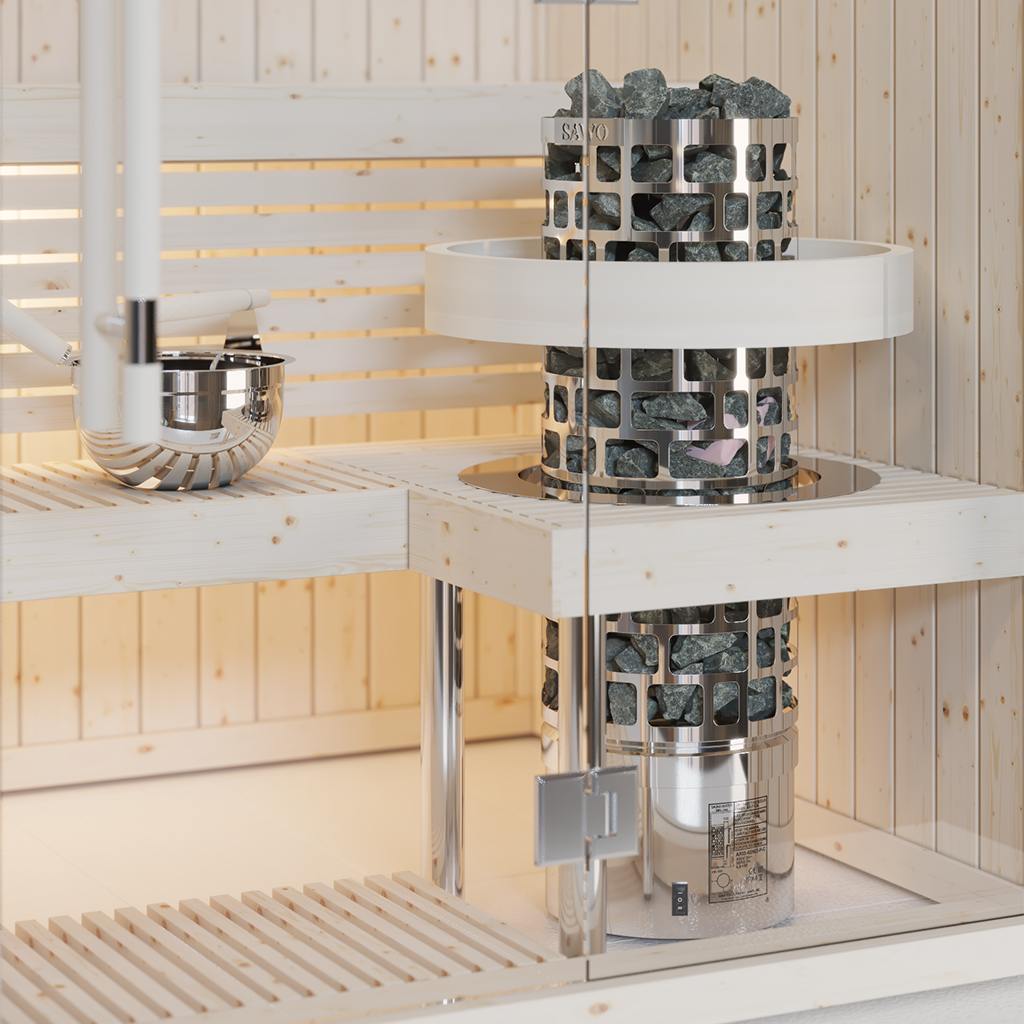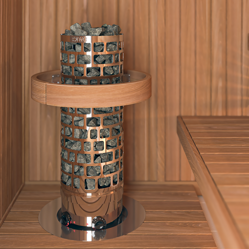 Der Aries Round von Sawo bietet eine kostengünstige Option für einen runden Saunaofen.