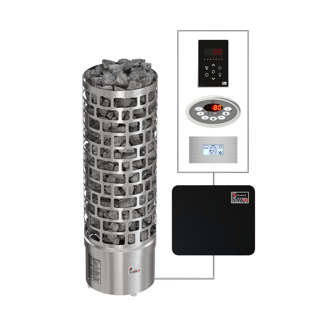 Der Aries Round von Sawo bietet eine kostengünstige Option für einen runden Saunaofen.