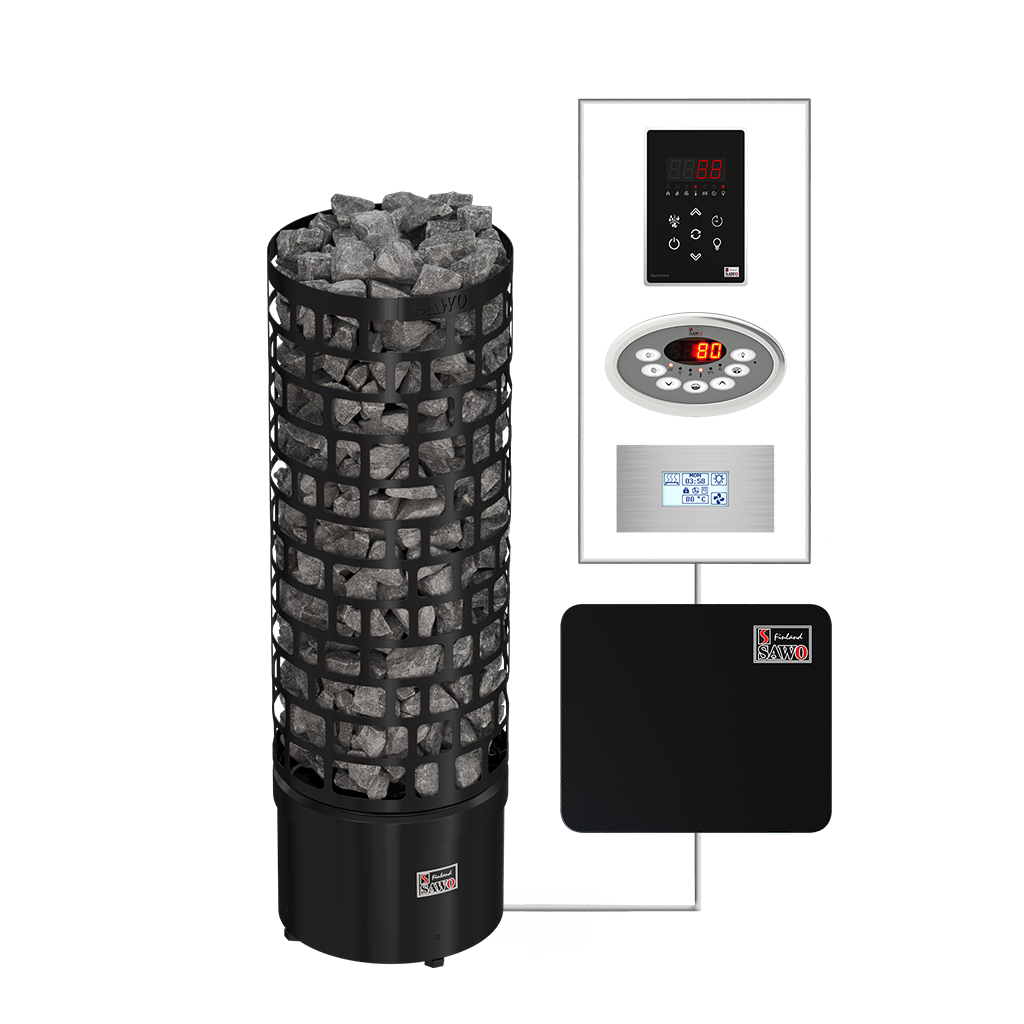 Der Aries Round von Sawo bietet eine kostengünstige Option für einen runden Saunaofen.